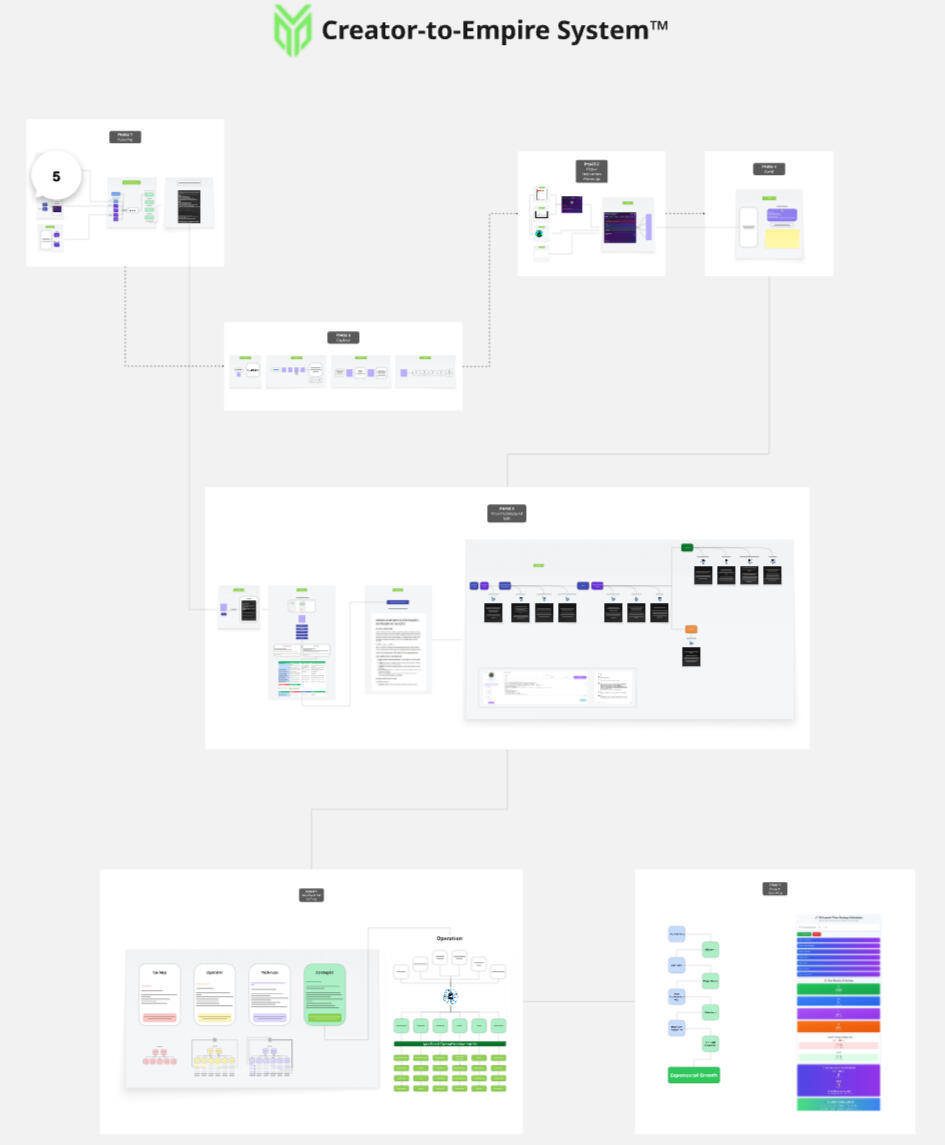 ✔️ The Creator-to-Empire™ Visual Framework: The complete high-resolution framework of my proprietary system. The exact "map" I use to build 7-figure creator businesses.✔️ The A-to-Z Video Walkthrough: I'm not just giving you the map; I'm going to be your personal guide. This is a full video course where I explain the 'why' and the core strategy behind every single phase, ensuring you know exactly how to read this map for maximum profit.✔️ The Master Prompts: The prompts that power this system. The exact strategic questions and commands that we use to turn a simple AI into a world-class business architect.